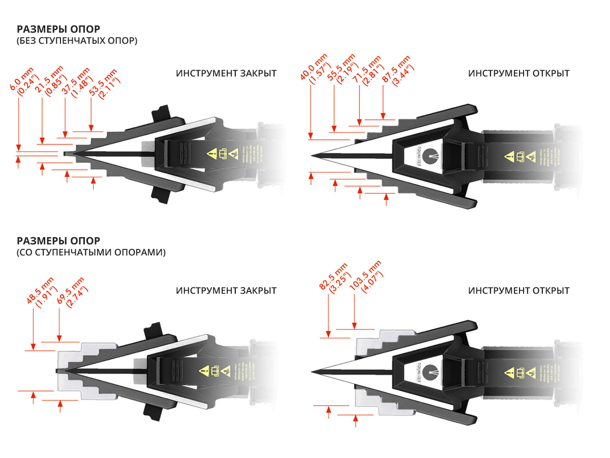 6.0 мм – 40.0 мм на 1-й ступени 6.0 мм – 87.5 мм на 4-й ступени (без опор ступенчатых) 48.5 мм – 103.5 мм (при использовании опор ступенчатых) |